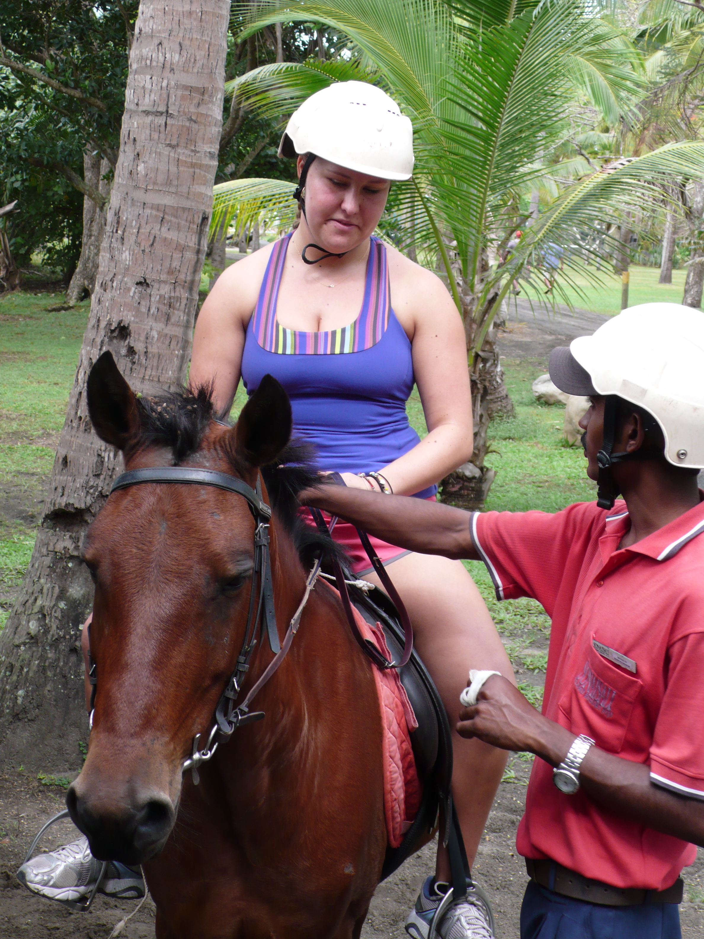 Paying for the ride in cash was only slightly less complicated than getting a glass of wine at this resort, and it took the woman a record of thirty minutes to get the math right and give us the correct amount of change we required. The trouble and my mosquito-bitten legs were well worth it, as we sat on our geldings trudging through island trails and volcanic beaches guided by Mithun, a sassy Indian horse trainer.