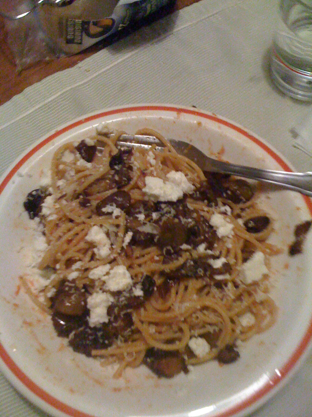 Dinner is very similar to lunch except it tends to include more courses and of course last longer.  The first course is obviously pasta pasta pasta.  Pasta never gets old, however, as there are a million different ways to prepare it.  As the primo piatto my well-trained American mind is constantly confused by the fact that the carbs come first.  In fact, I am sometimes tempted to dump some lettuce on top of my pasta, pour some oil and vinegar (when available) on it, and eat down to the pasta from there.  I think that might be somewhat impolite, so I refrain.  After la pasta, there is sometimes another course that is meat.  As I am in the north, this is usually red meat like a hamburger or some kind of sausage type thing.  I of course don’t really know what it is I’m eating as I am not accustomed to eating red meat.  Again by this time I am well into my food coma and very ready to tuck into the TV room for some Harry Potter with the kids.  We have agreed to watch it half in English half in Italian so as to satisfy both my need to better my Italian and the kids’ desires to learn some English.