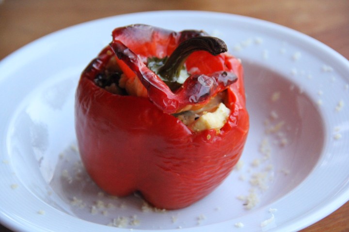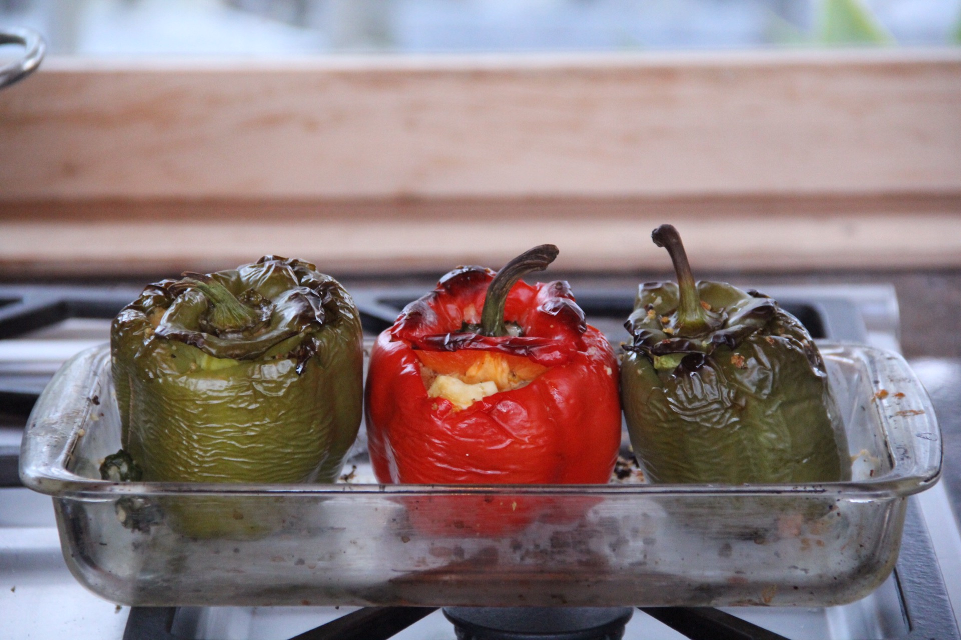 I chose to stuff these peppers with tofu, couscous, and spinach, because I was too exhausted to grocery shop after work and I had these ingredients available in my pantry/fridge. You are welcome to alter the recipe to whatever you have available in your fridge/pantry.
